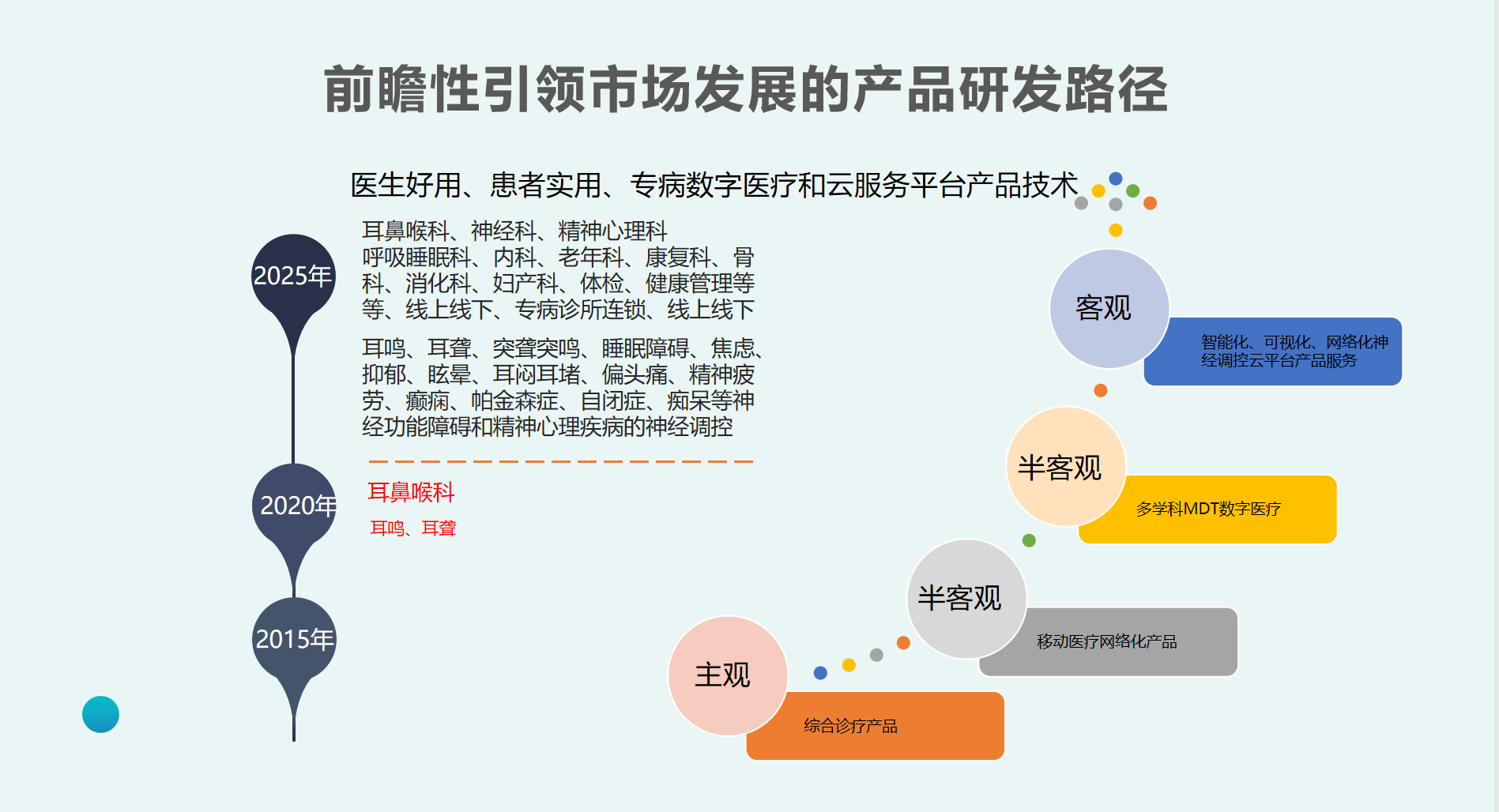 貝泰福專注老齡社會發病率高、醫保負擔重、全球市場容量超1000億美元的神經功能障礙藍海市場,包含耳鳴、耳聾、睡眠障礙、眩暈、情緒困擾、心理不適、梅尼埃、偏頭疼、神經疲勞、癲癇、帕金森、自閉癥、多動癥、阿爾茨海默綜合癥(癡呆)等,業務覆蓋檢測、診斷、治療和康復全周期慢病管理。基于腦神經電生理的無創物理刺激干預神經調控產品技術,強調神經功能障礙的生理和心理的交互作用和解決從主觀到客觀的檢測評估問題,探索出多渠道差異化B2B2C商業模式,形成了產品技術、診療方案(數字處方)和商業模式三維一體的獨特競爭優勢,創造性地在醫療機構、基層篩查體檢、數字云醫療三大領域拓展業務,實現線上線下互聯互通的云服務平臺,并建立以自有產品技術、診療方案和技術服務為主要支撐的神經功能障礙專病診所連鎖體系。